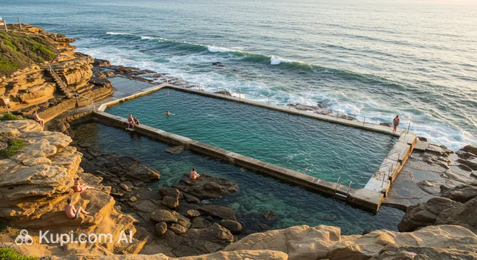 The bath is a pool carved directly into the coastal cliffs. It represents a unique combination of past engineering and the wild nature of Australia. The site attracts travelers with its unusual aesthetic and the chance to feel the power of the ocean while remaining in the relative safety of the stone bowl.