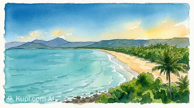 Despite its name, the beach is actually about 4 kilometers long. It begins at the foot of Flagstaff Hill and extends south to the mouth of the Mowbray River, offering the perfect space for both secluded relaxation and active recreation surrounded by untouched tropical nature.