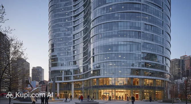The world-renowned firm Foster + Partners worked on the design. The architects used a technology innovative for North America—the diagrid (diagonal grid). This triangular steel structure allowed the building to be lighter and more stable while maintaining the elegance of its curved forms.