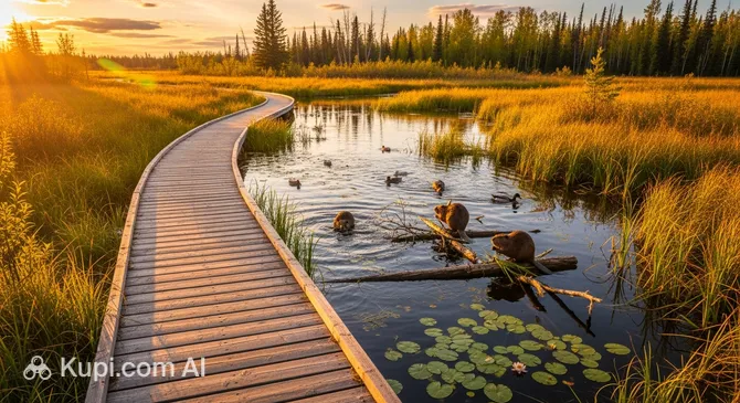 Imagine a unique natural space where people can experience wildlife without crossing its boundaries. The Beaver Boardwalk, located in the town of Hinton, is exactly that kind of place. Canada is proud of this attraction, as it is the world's longest freshwater boardwalk, stretching over 3 kilometers.