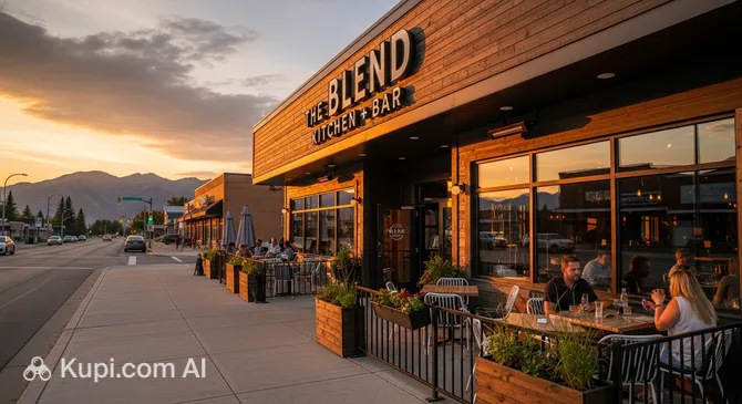 Finding The Blend Kitchen + Bar is easy—the restaurant is located in the heart of Hinton at 129 Jasper St. The establishment is within walking distance of the main streets and other popular locations, making it a convenient stop during a walk.