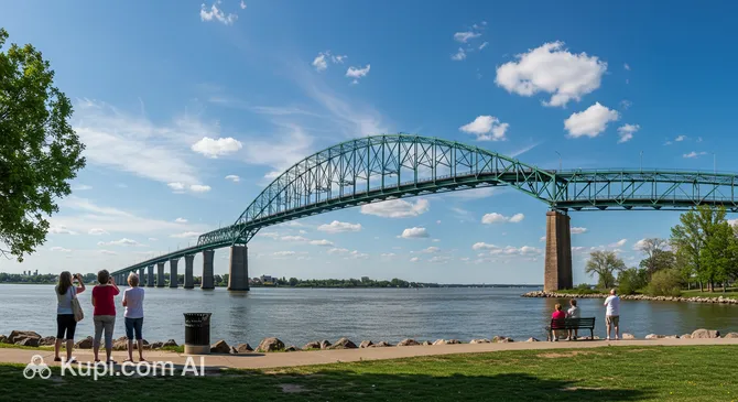It is important to note that the Blue Water Bridge itself is intended exclusively for vehicular traffic. However, for tourists in the Point Edward area, there are landscaped zones and paths that allow you to get as close as possible to the base of the structure and enjoy the river views.