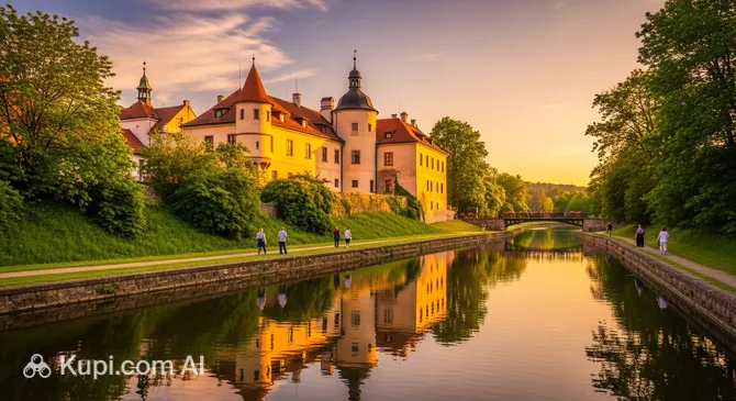 The main place for walking in the town is the extensive castle park surrounding the historical estate. This green space is perfect for leisurely strolls in the shade of old trees, and its proximity to the water gives it a special romantic atmosphere. The park serves as a favorite vacation spot for both locals and visitors to the town.