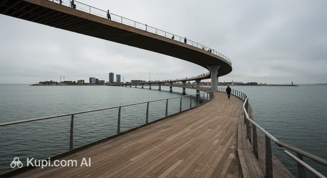 One of the city's most whimsical features is The Infinite Bridge, a circular wooden pier located on the beachfront. It has no beginning and no end, allowing visitors to walk in a continuous loop while enjoying panoramic views of the bay and the forest.
