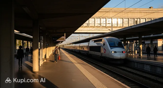 Poitiers Railway Station (Gare de Poitiers) is a key transport hub in the Nouvelle-Aquitaine region, located on the line between Paris and Bordeaux. The station is situated in the lower part of the city, in the valley, and serves as the main gateway for tourists heading to the historic centre or the famous theme park Futuroscope. Poitiers Railway Station. Illustration.