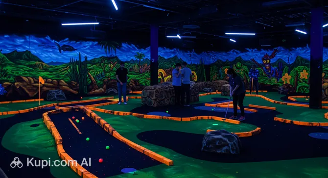"3D Neon Mini Golf in Munich" is a unique entertainment space located in the city of Munich that takes the classic game to a whole new dimension. Unlike traditional outdoor courses, the action here takes place indoors, where the magic of ultraviolet light reigns. The walls and floor are painted with bright fluorescent colors, creating fantastic worlds around the players.