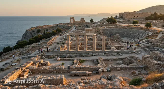 For a glimpse into the island's ancient past, the Acropolis of Rhodes offers a serene escape from the bustling town center. Located on Monte Smith Hill, this site features the remnants of the Temple of Apollo, an ancient stadium, and a small theatre. Unlike the fortified medieval town, the Acropolis is open and blends naturally with the landscape, providing spectacular panoramic views of the Aegean Sea and the sunset.