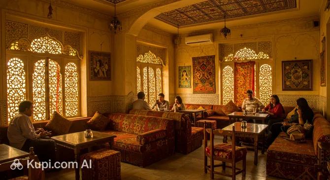 "Qalaa Art Bar & Coffee House" is an atmospheric and stylish establishment located in the picturesque city of Udaipur. It is not just a dining spot, but a true art space where gastronomy meets art. The interior is thought out to the smallest detail, creating a cozy and inspiring environment that attracts both creative youth and tourists seeking peace and aesthetics.