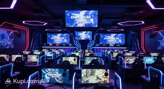 "Emporium Esports Cybercafe" is a modern space for video game and digital entertainment enthusiasts located in the city of Palembang. This establishment is a classic esports arena (iCafe) where visitors can immerse themselves in virtual worlds using high-performance computers and professional peripherals. The atmosphere here is steeped in the spirit of competition and technological progress.