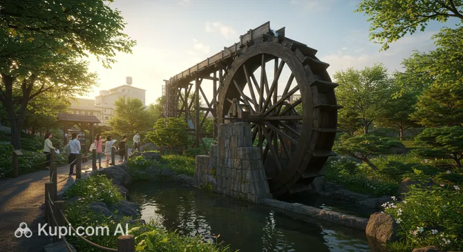 When visiting the Indian Water Wheel, you can witness the operation of a traditional mechanism firsthand. Watching powerful water flows set the massive wheel in motion allows for a better understanding of Japanese engineering solutions and provides a touch of the living heritage of the past.