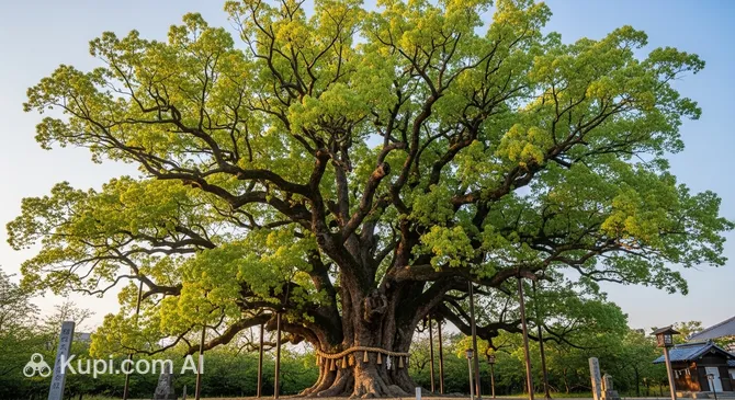 The tree is located on the grounds of the modest Kitazaka shrine. It amazes with its scale: the sprawling canopy and massive trunk, whose age is measured in centuries, create an atmosphere of deep peace and eternity. For locals, it is not just a plant, but a sacred symbol and a place of power.