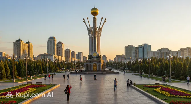 At the Monument of Independence, you can see a replica of the "Golden Man," a warrior whose ancient costume, made of thousands of gold pieces, was discovered in a nearby burial mound. This figure has become a national symbol, representing the rich nomadic heritage of the Kazakh people.