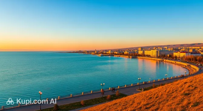 With a population of approximately 78,000 people, the city has a distinct atmosphere shaped by its industrial roots and its proximity to the water. The local climate is semi-desert, characterized by hot, dry summers that make the lakeside beaches particularly appealing for seasonal vacations. The surrounding landscape features the vast steppes, providing a stark yet captivating backdrop to the city's architecture and the shimmering blue waters of the lake.