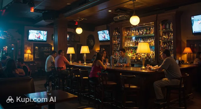 The main feature of the place is, undoubtedly, its focus on sports broadcasts. Many large screens are installed here, showing live matches of the NFL, NBA, MLB, NHL, and other significant sporting events. The interior is designed in a traditional style: comfortable furniture, sports memorabilia on the walls, and a long bar counter that encourages socializing.