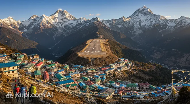 While Lukla itself is a compact settlement, it sits on the doorstep of the Sagarmatha National Park, a UNESCO World Heritage site. Although the official park entrance is a day's walk away in Monjo, the town is enveloped by the same breathtaking ecosystem. The surrounding hillsides are covered in dense forests of pine, juniper, and, in the spring, vibrant blooming rhododendrons. This natural amphitheater serves as the ultimate green space, offering fresh mountain air and panoramic views of peaks like Karyolung and Nupla.