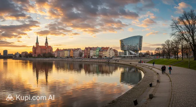 Situated on the Oder River and the large Dąbie Lake, the city is a "floating garden" characterized by an abundance of lush parks, green islands, and waterways. Although it lies inland, its proximity to the Baltic Sea and the German border deeply influences its climate and character. The history of Szczecin is rich and complex, having been a meeting point for various cultures over the centuries, which is reflected in its diverse monuments and urban layout.