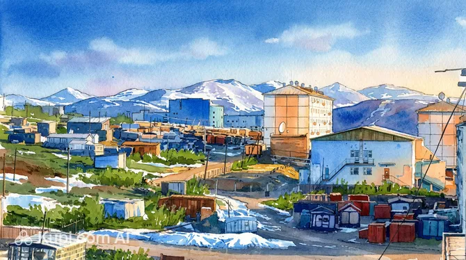 Architecturally, the town is notable for its Stilt Architecture. To prevent the heat of the buildings from melting the frozen ground beneath, large apartment blocks are elevated on concrete piles. This engineering solution gives the streets a distinctive look, with utility pipes running overhead rather than underground, creating a unique "sci-fi" industrial aesthetic that defines the town's character.