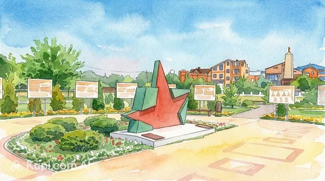 On an area of about 2 hectares, more than 600 trees have been planted, including majestic spruces, cypresses, and famous pines that create pleasant shade on hot days. The center of visitors' attention is a unique two-meter monument in the shape of a red star rising above a soldier's tunic. The memorial atmosphere is complemented by information boards telling of the city's heroic deeds during the war years and a mass grave of the defending heroes.
