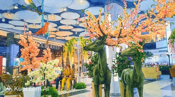 Central Park Shopping Mall. Illustration.