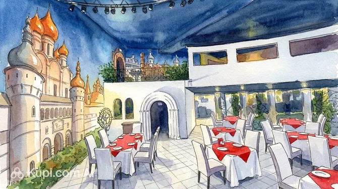 The interior of the establishment is a true point of pride for Russia. Designer Vadim Kanopkin created several themed zones here: from the cozy Shpak's Room to the ceremonial Tsar's Chambers and the snow-white palace hall. Every corner is hand-painted and filled with details of national flavor: you'll find the Monomakh's Cap, suits of armor, and even the famous "time machine."