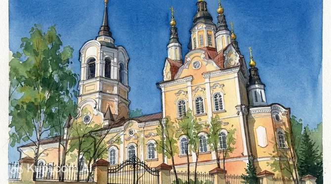 The white-stone two-story building impresses with its slender proportions and intricate exterior decor. The church's uniqueness lies in its tiered composition: five octagonal drums with domes create a soaring silhouette, while the tall bell tower with a spire serves as an excellent landmark for travelers. This attraction, which Russia proudly presents among its cultural treasures, recreates the forms of the best cathedrals in Tobolsk and is a vital part of the old city's visual character.