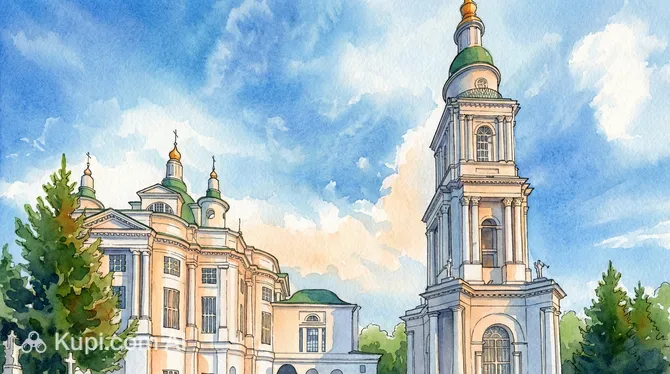 One of the main architectural landmarks of the complex is the slender 82-meter-high bell tower. It holds the 12th place among the tallest bell towers in the country and is visible from almost any point in the southern part of the city. The snow-white walls of the cathedral, combined with elegant decor blending Classical and Baroque styles, create an image of incredible spiritual purity and monumentality.