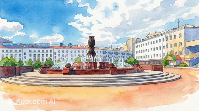 Another popular urban space is Ordzhonikidze Square, which serves as a cultural hub in the city center. It is home to the main Fountain, a beloved meeting point for residents. During the warm season, the sound of splashing water creates a refreshing atmosphere, making it an ideal spot to sit and observe the daily life of the city. The square is surrounded by key buildings, including the Sakha Theater, adding to its significance as a public gathering place.