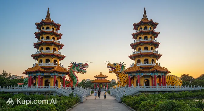 Today, Kaohsiung is packed with exciting attractions. The iconic Lotus Pond is a must-visit, famous for the Dragon and Tiger Pagodas that float upon the water. For art enthusiasts, the Pier-2 Art Center offers a creative space filled with sculptures, galleries, and murals in repurposed warehouses. Meanwhile, a stroll along the banks of the Love River provides a romantic and scenic way to experience the city's nightlife.
