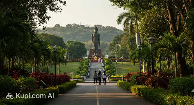 The crown jewel of the city's green spaces is the expansive Hat Yai Municipal Park. Located about 6 kilometers from the city center, this park is not just a place for a leisurely stroll but a major recreational complex situated on a hill. It is beautifully landscaped with flowering gardens and features several significant religious statues, including a large standing Buddha and a towering statue of Guan Yin, the Goddess of Mercy. The park's elevated position provides a cool breeze and a peaceful atmosphere, making it a favorite spot for locals to exercise and relax.