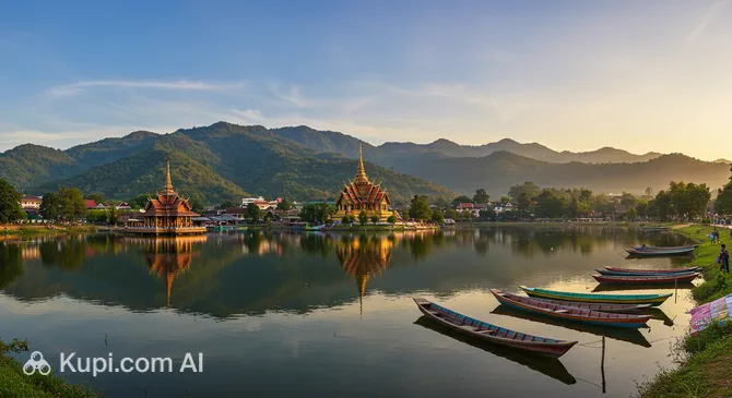 Among the city's top attractions is the iconic Wat Phra That Doi Kong Mu, which sits atop a hill and offers panoramic views of the town and the surrounding valley. In the heart of the city lies the picturesque Jong Kham Lake, flanked by the stunning twin temples of Wat Jong Kham and Wat Jong Klang. These sites are particularly magical in the evening when the illuminated chedis reflect shimmering golden light onto the water.