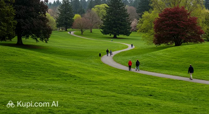 For a classic recreational experience, Cornwall Park is a favorite among locals. Located in the heart of the city, this 70-acre park feels like a grand estate with its rolling lawns, towering old-growth trees, and meticulously maintained rose garden. It offers a variety of amenities, including tennis courts, a popular disc golf course, and a splash park for summer cooling. The park's diverse landscape, ranging from open fields to dense woods, provides a tranquil escape without leaving the urban area.