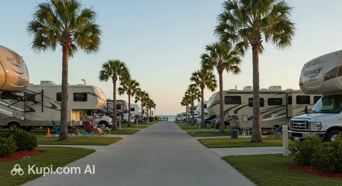 This location is rightfully considered one of the best RV resorts in the region due to its unique location and high level of service. Guests are offered spacious concrete pads with a full range of hookups, including various electrical power options, water, and sewer. A particular highlight of the complex is the heated pool with panoramic views of the endless sandy beaches.