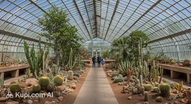 The centerpiece of the complex is the modern solar conservatory, consisting of three greenhouses. Thanks to an innovative solar heating system, tropical, Mediterranean, and desert landscapes flourish here year-round. Visitors can see banana and fig trees, which are rare for these latitudes, as well as exotic flowers. Special attention is paid to sustainability: the garden serves as a living demonstration of renewable energy sources and resource conservation.