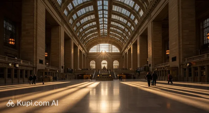The building became famous for its Great Hall covering an area of over 1,800 square metres with massive Corinthian columns and a huge skylight at a height of 34 metres. The station has repeatedly been a hero of feature films; the most famous scene is the shootout on the stairs in the movie "The Untouchables". In the 2010s, a large-scale reconstruction was carried out, restoring the historic brilliance of the skylight and modernising passenger areas while preserving the unique historical appearance.