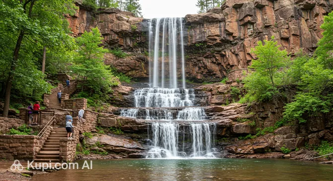 One of the most stunning natural wonders in the area is Seven Falls. Known as "The Grandest Mile of Scenery in Colorado," this attraction features a magnificent series of seven cascading waterfalls that drop a total of 181 feet down a granite cliff. Visitors can admire the falls from the base or climb the 224 steps to the top for breathtaking views of the verdant valley below. In the evenings, the water is illuminated, creating a magical atmosphere.