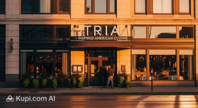 Visitors are drawn not only by the exquisite cuisine but also by the impressive bar. TRIA is famous for its wine collection (over 35 varieties available by the glass) and signature craft cocktails. The interior, featuring "fireside dining" elements, creates a unique coziness, turning an ordinary meal into a true aesthetic pleasure.