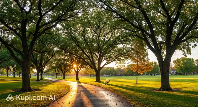 On the scenic banks of the Red River lies Oak Grove Park—one of the oldest and most inviting corners of Fargo, located in the USA. This well-maintained green oasis covering approximately 36 acres (14.6 hectares) is rightfully considered a gem of the local landscape thanks to its majestic century-old oak trees and peaceful atmosphere.