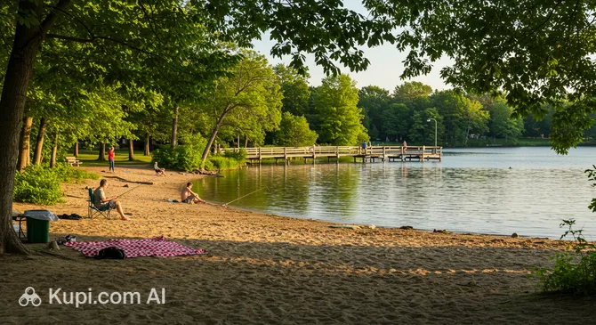 For those visiting during the warmer months, Ashwaubomay Lake Park offers a fantastic spot for outdoor recreation. Situated along the banks of the Fox River, this park is best known for its man-made lake, which provides a clean and safe sandy beach for swimming. Beyond the water, the park connects to a network of riverside trails, making it a perfect starting point for a scenic walk or bike ride. It is a popular destination for families looking to enjoy a picnic with a view of the river.