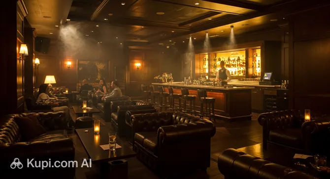 The interior is designed in a classic style, conducive to leisurely conversations and relaxation. The aromas of premium tobacco and elite alcohol blend harmoniously here. For tourists traveling across the USA and seeking an authentic evening experience, this lounge will be an excellent find.