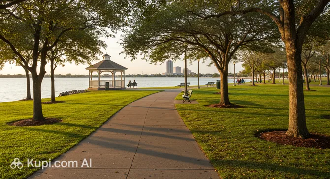 Closer to the city center, Prien Lake Park provides a beautifully manicured setting right on the water's edge. This 29-acre park is a favorite among locals for its scenic walking paths that offer sweeping views of the lake and the ship channel. With its graceful fountains, vibrant flower gardens, and ample pavilions, it serves as a perfect backdrop for a leisurely afternoon stroll or a sunset viewing. The park also features a canoe and kayak launch, making it accessible for those who want to explore the water.