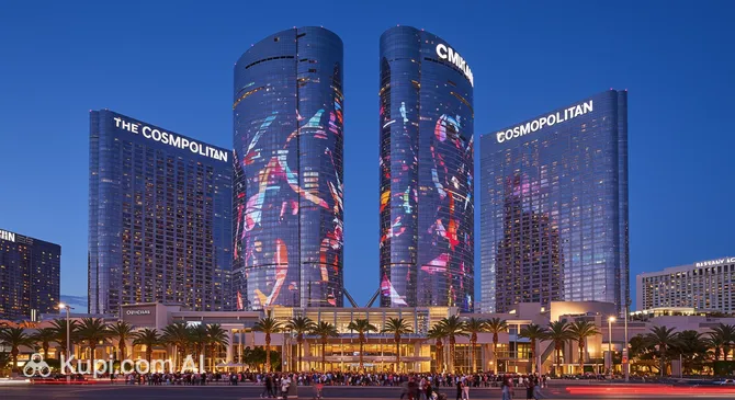 For travelers seeking a more modern and chic atmosphere, The Cosmopolitan is a top choice. Located right in the center of the Strip, it stands out with its residential-styled living spaces and private terraces that offer breathtaking views of the skyline—a rarity among hotels in the area.