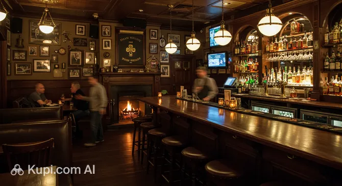 One of the establishment's standout features is its unique design. The entire interior, including the solid wood paneling, furniture, and bar counters, was handcrafted from the finest materials and imported directly from Ireland. This creates an unmistakable sense of authenticity rarely found outside of Europe. The space is equally comfortable for large groups at communal tables or couples in secluded booths.