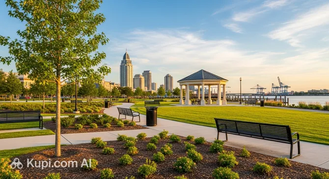 For those seeking a connection with the water, Cooper Riverside Park is an exceptional choice. Located right on the Mobile River in the downtown area, this waterfront park offers expansive views of the busy port. It is a perfect spot to sit on a bench and watch massive cargo ships and cruise liners navigate the channel. The park features paved walkways, sculptures, and plenty of open space, making it a favorite for a relaxing afternoon stroll or a picnic by the water.