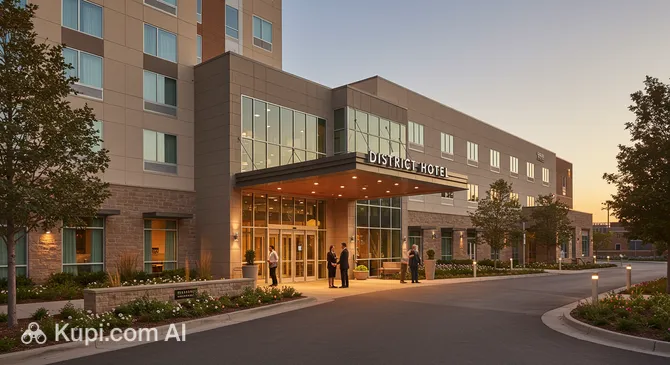 Located in the vibrant state of Oklahoma, The District Hotel is a stylish and modern resort complex in Oklahoma City. This resort_hotel category property attracts tourists with its cozy atmosphere and high quality of service, making it an excellent choice for those traveling through the USA.
