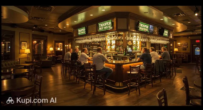 The menu offers a wide variety: from traditional Fish and Chips and Shepherd's Pie to classic American burgers and craft beverages. Trooper Thorn's is famous for its hospitality, making every visit special, whether it's a family dinner or a lively get-together with friends over a glass of excellent Irish stout.