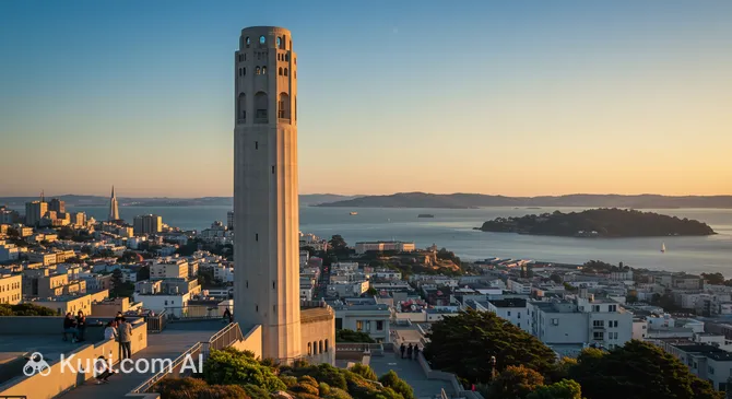 San Francisco's history is also etched into its skyline and coastline. Standing atop Telegraph Hill, Coit Tower is a slender white concrete column that has watched over the city since 1933. Visitors can admire the depression-era murals inside the base, which depict scenes of life in California during the 1930s, or take the elevator to the top for 360-degree views of the bay.