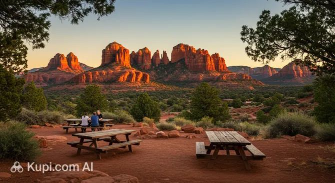Imagine the mirror-like surface of a creek reflecting majestic red rock spires under the bottomless Arizona sky. This is exactly the scene that Crescent Moon Picnic Area offers its guests—one of the most inspiring natural spaces hidden in the outskirts of Sedona. This spot is recognized as one of the most photographed locations in the Southwestern USA, thanks to its unique perspective of the famous Cathedral Rock.