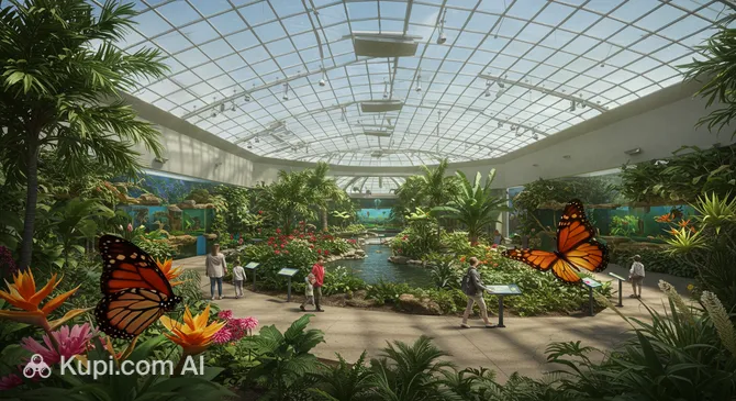 The core of the complex is an indoor conservatory where hundreds of vibrant tropical butterflies flutter freely among exotic plants. The second part, Marine Cove, introduces visitors to the amazing life of coral reefs and their inhabitants. The facility serves as an important educational platform, focusing on nature conservation and the study of wildlife life cycles.