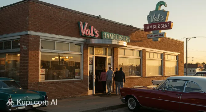 Founded in 1959 by the Henning couple, the restaurant has managed to preserve its unique 1950s atmosphere and stand its ground against global chain giants. Val's Hamburgers is a family business passed down through generations, remaining an unchanging island of nostalgia with its original neon sign and traditional menu.