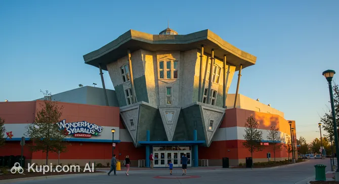 Inside the shopping complex, you will find the distinctively designed WonderWorks Syracuse. Often described as an "amusement park for the mind," this attraction combines education and entertainment with over 100 hands-on exhibits. Its upside-down exterior is an iconic sight, and inside, guests can experience hurricane-force winds, lie on a bed of nails, and explore various zones dedicated to space, light, and sound.